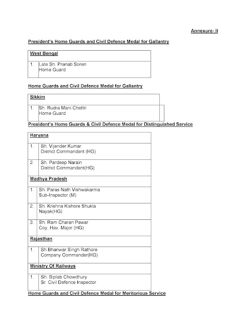 Sikkim 1. Sh. Rudra Mani Chettri Home GuardPresident’s Home Guards & Civil Defence Medal for Distinguished Service